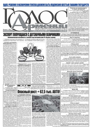 Общественно-политическое издание "Голос Армении" выходит с мая 1991 года и является наиболее популярной, авторитетной и цитируемой русскоязычной газетой страны. Спектр затрагиваемых проблем - самый широкий: от политики и экономики до культуры и социальных сетей, а авторы "Голоса Армении" по праву составляют золотой фонд современной армянской журналистики.
