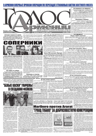 Общественно-политическое издание "Голос Армении" выходит с мая 1991 года и является наиболее популярной, авторитетной и цитируемой русскоязычной газетой страны. Спектр затрагиваемых проблем - самый широкий: от политики и экономики до культуры и социальных сетей, а авторы "Голоса Армении" по праву составляют золотой фонд современной армянской журналистики.