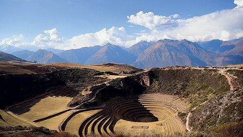 Рядом с городком Морай (полсотни километров от Куско) — наиболее выдающаяся спираль (на фото вверху. — Прим. «Вокруг света»). В ней десяток слоев, расширяющихся в диаметре к поверхности земли. Предполагают, что это ботаническая лаборатория инков: на каждой террасе нашли свой сорт семян, перепад температур от верхней террасы до самой глубокой — примерно 15 градусов. Считается, что инки пытались понять, в каких температурных условиях лучше растет то или иное полезное растение. И сделали такую экспериментальную «теплицу». Решение простое, элегантное и, как обычно у инков, рассчитанное на вечность. При условии, конечно, что ученые правильно определили назначение сооружения.